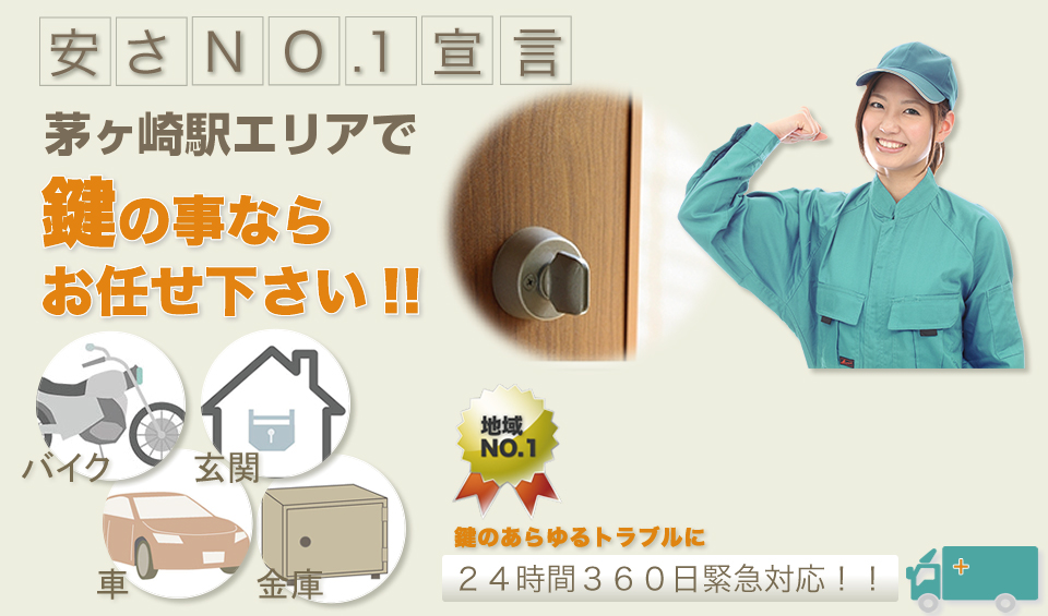 茅ヶ崎駅でカギ交換なら私共にお任せ下さい!お客様のご相談を親身にお聞きし、高品質サービスで対応致します!出張料完全無料で弊社のエキスパートが丁寧にご対応させて頂きますので、茅ヶ崎駅でお悩みのお客様はお気軽にまずはお問い合わせ下さい。カギ交換・解錠・作成等カギのトラブルでしたら即対応させて頂きます。「玄関の鍵を防犯性の高いカギに交換したい」「車の鍵を作成して欲しい」そんな茅ヶ崎駅のお客様はお気軽に信頼の実績を誇る弊社のスタッフまでお電話ください!何かご不明点等御座いましたらお気軽にお申し付けください!